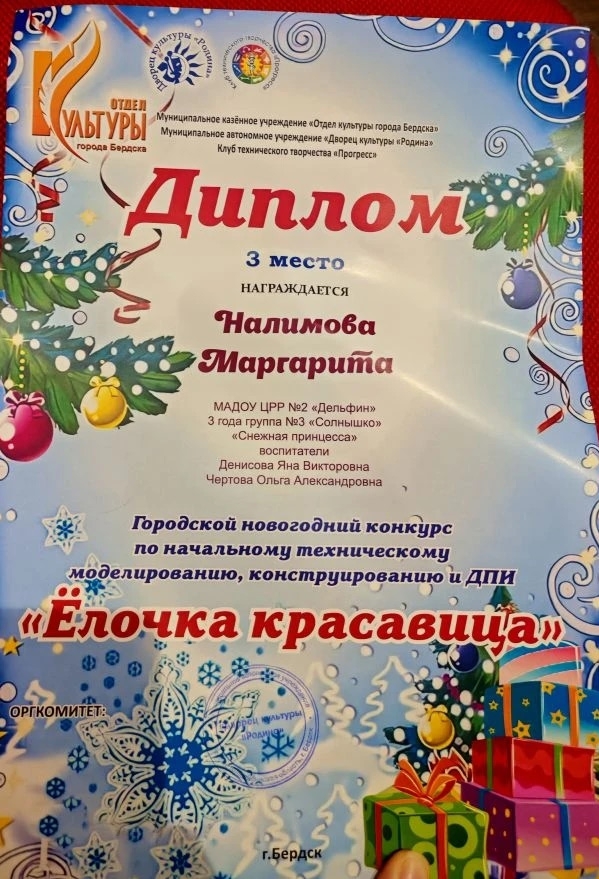 Диплом 3 место Налимова Рита