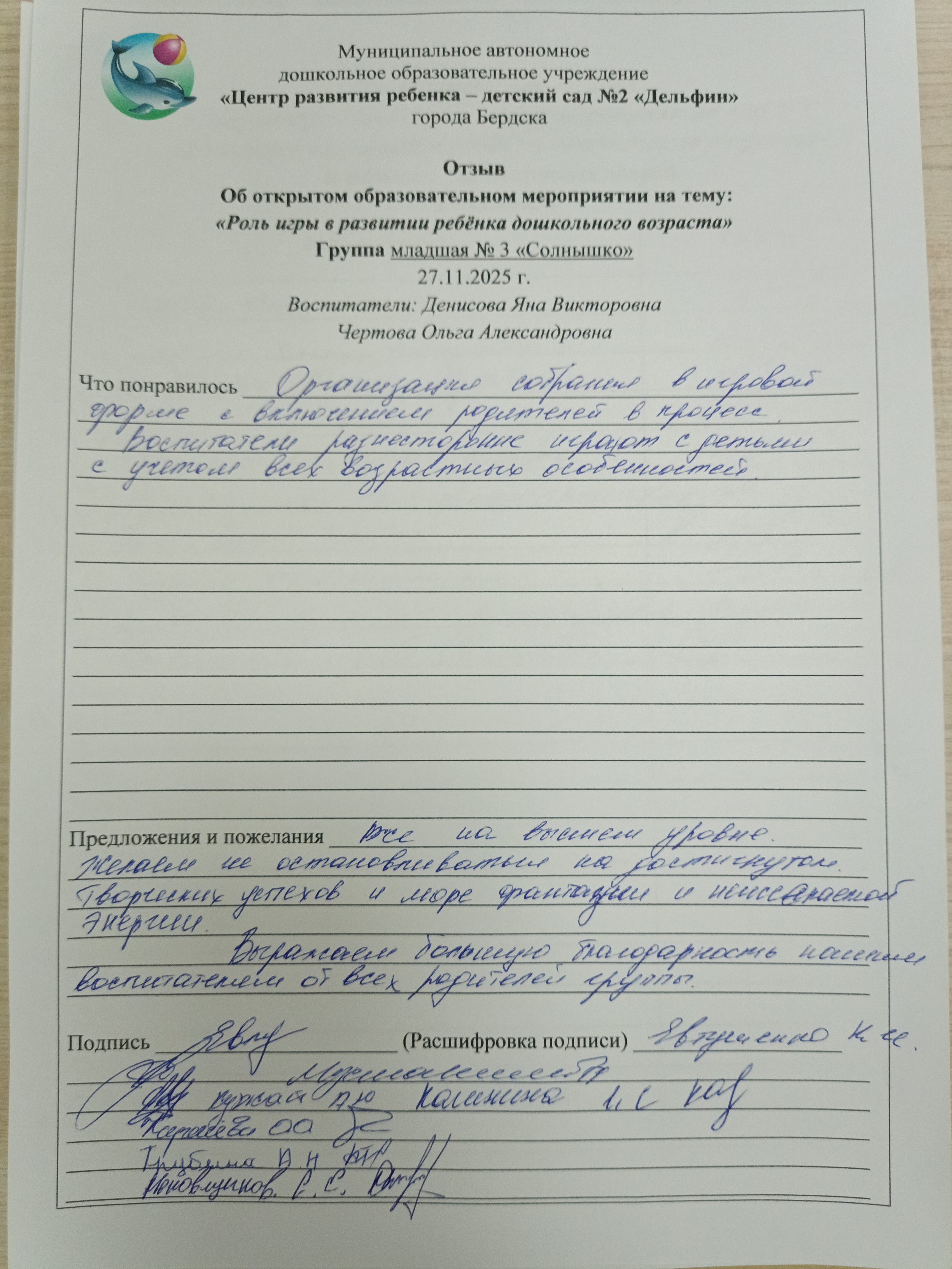 Отзыв родителей
