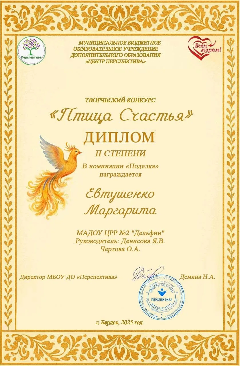 Диплом 2 степени Евтушенко Рита
