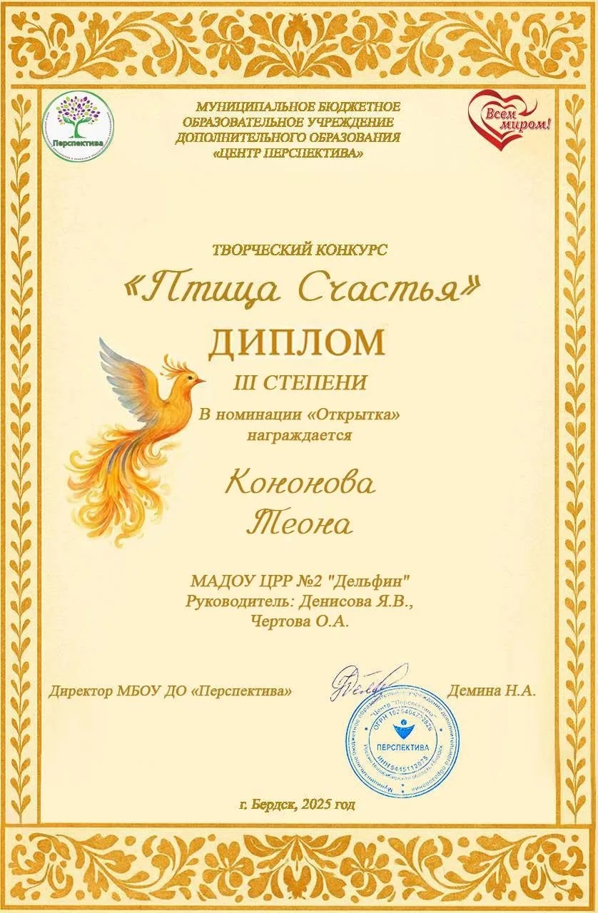 Диплом 3 степени